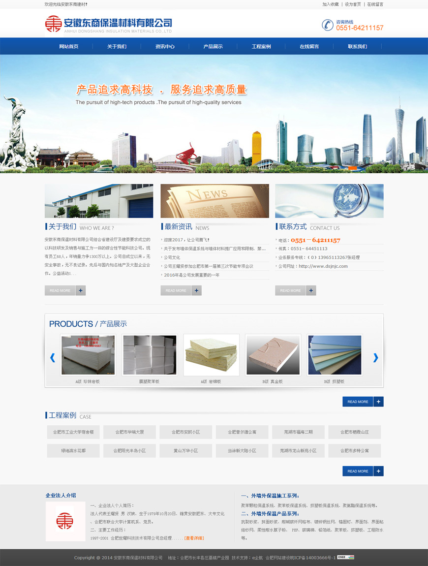 安徽東商建材有限公司結合省建設廳及建委要求成立的以科技研發及銷售與施工為一體的綜合性節能科技公司。現有員工68人,年銷量力爭1300萬以上。公司自成立以來,無安全事故,無不良記錄。先后與國內知名地產及大型企業合作。