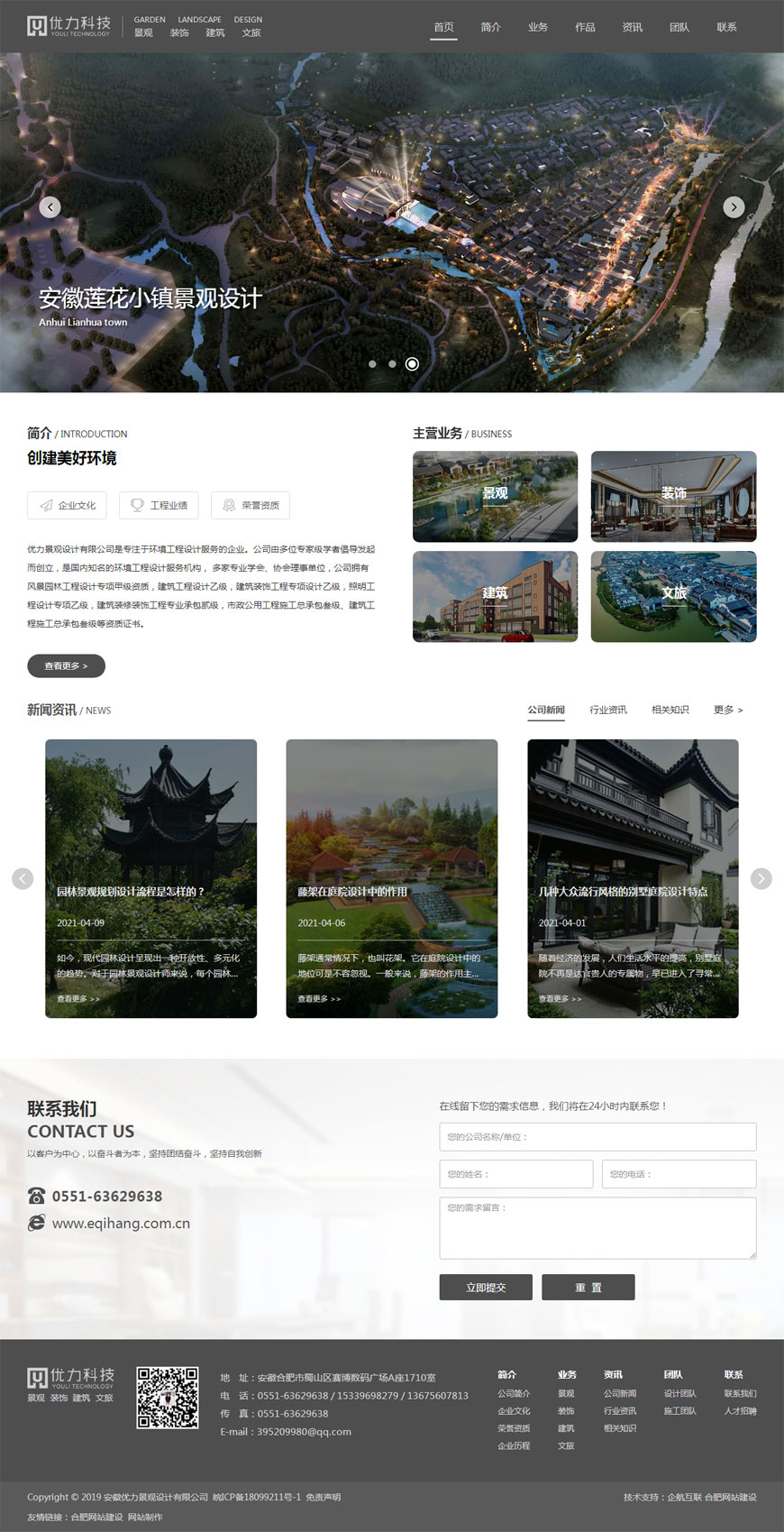 合肥園林設計網站模板_合肥景觀設計網站模板_合肥裝飾設計網站模板......DIV+CSS/帶手機版數據同步!城市規劃風景園林景觀網站源碼,園林建筑綠化類企業網站。