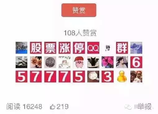 這是最新出爐的廣告形式,據(jù)說視覺志和小道消息等公眾號都深受其害。具體方法是用27個不同頭像的微信以最快的速度對博主進行贊賞,屆時贊賞只顯示前面的27個微信頭像和相應(yīng)的廣告。據(jù)說,有人花了27元取得了30萬的傳播效果。