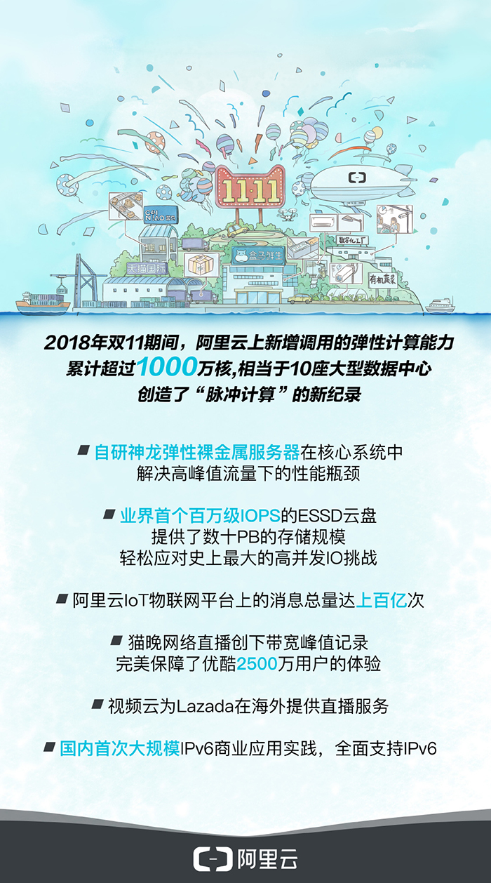 每年雙11除了是對大家消費能力的檢驗以外,背后其實還有對數據服務器的重大考驗。今年雙11,天貓成交額2135億元,物流訂單達到10億單,特別是在11月11日零點,大家都忙住搶購商品,大規模并發的支付請求對于數據服務器的沖擊不下于一場DDOS攻擊,阿里云為此部署全球最大規?;旌显茟茫w天2.0全面支撐全社會雙11。所以你今年零點剁手付款是不是更流暢了呢?