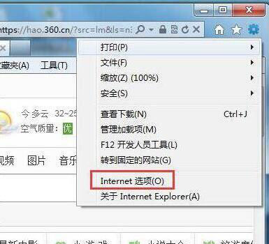 1、修改IE的Internet選項設置,打開IE瀏覽器,點擊“工具”進入Internet選項。如圖所示:
