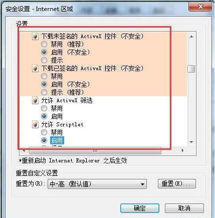 4、下拉滾動條,在“允許Scriptlet”后點擊“啟用”點擊確定。