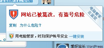 4.08日中午3點(diǎn)左右發(fā)現(xiàn)網(wǎng)站被鑒定為危險(xiǎn)網(wǎng)站,具體表現(xiàn):使用Ie、360瀏覽器打開(kāi)網(wǎng)站出現(xiàn)攔截提示,使用QQ給好友發(fā)網(wǎng)站出現(xiàn)危險(xiǎn)網(wǎng)站提示!對(duì)于無(wú)圖無(wú)真相的圍觀者,小編想說(shuō):請(qǐng)看圖