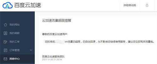 昨天晚上10點多,突然收到一個客戶的消息,說他收到了一個百度云加速的短信,說他的網站因為流量超標被回源了,讓我趕緊查看下怎么回事。看到這個消息后,把我也搞得有點懵,我記得我給他做的那個網站用的是百度云加速的免費版,每天有10G的流量,根本用不完啊,怎么會超標呢?難道是網站被人攻擊了?