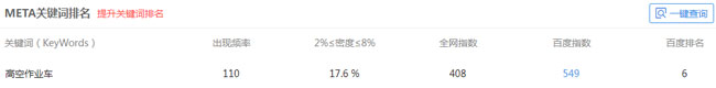 意外、太意外了,關鍵詞“高空作業車”百度指數549,今天沖到首頁第6了!如下圖: