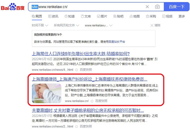 如下圖,該網站site首頁在第二位。但是該網站是沒有降權的,網站的排名依然是在搜索引擎首頁。