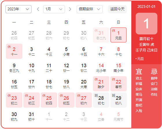 2022年12月31日至2023年1月2日元旦節放假,共三天,1月3日(周二)正常上班。