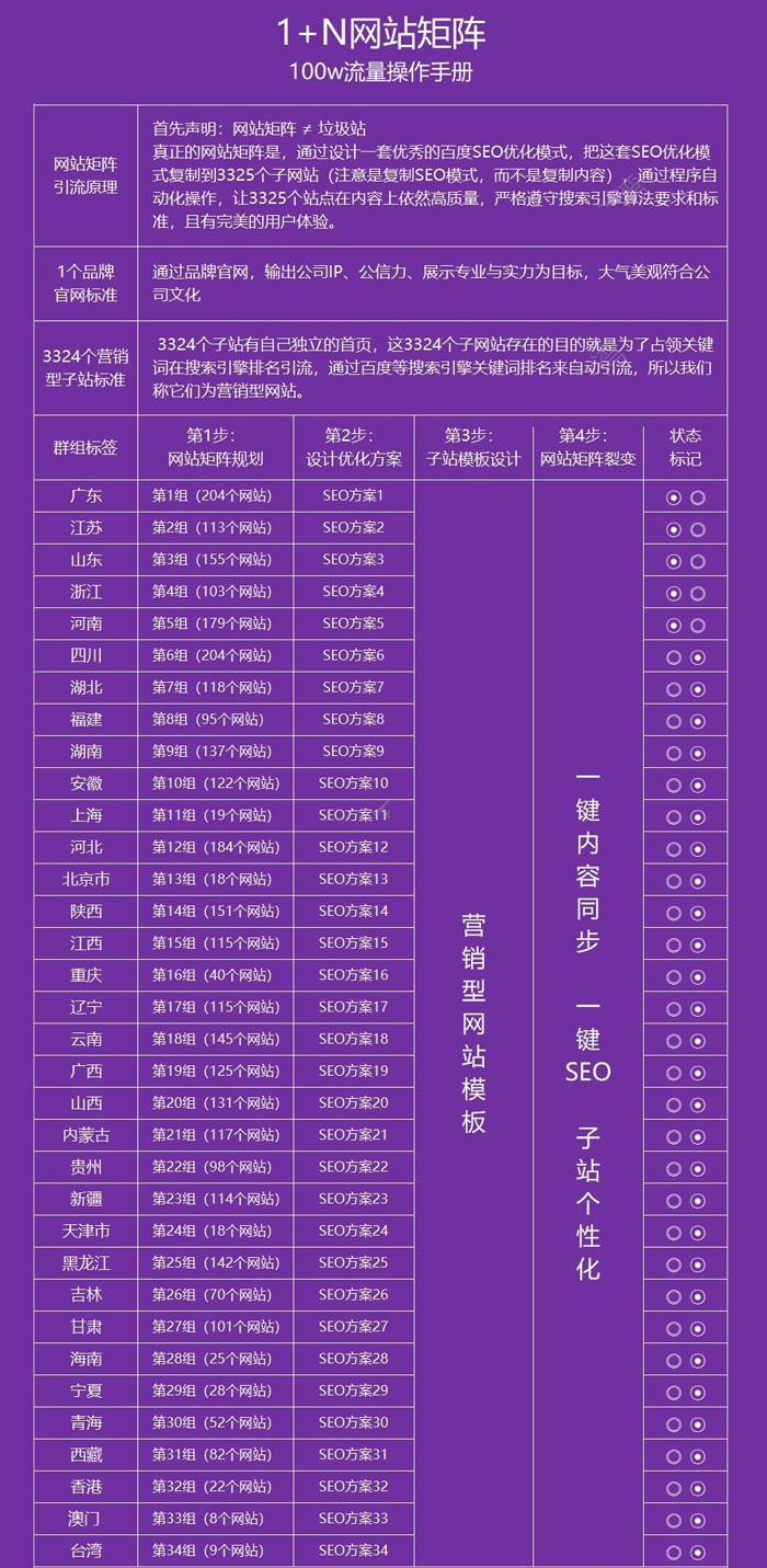 短視頻直播時代,被人很多人遺忘的引流獲客捷徑——網站矩陣,網站矩陣主要優勢是,碎片化的短視頻和直播無法解決用戶深入了解公司和產品,但是網站就解決了這個問題,將公司的產品做垂直營銷型網站,能精確描述產品的使用場景,能有針對性的滿足客戶需求,下面這套網站矩陣系統全面講述了,一個企業和個人應該如何通過網站矩陣來獲得100w免費流量的方法: